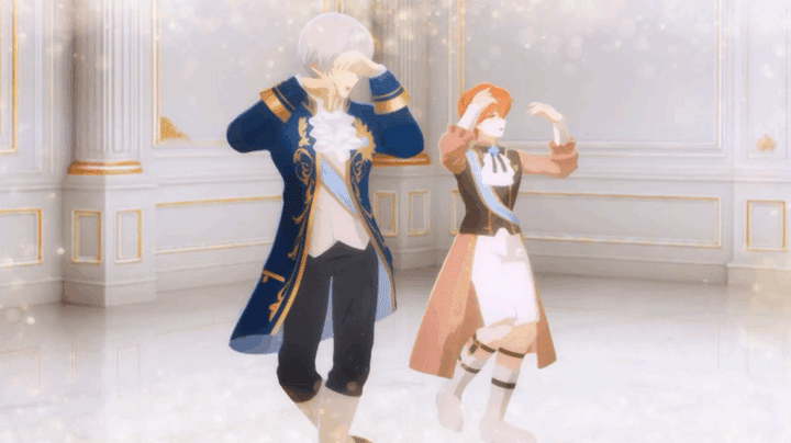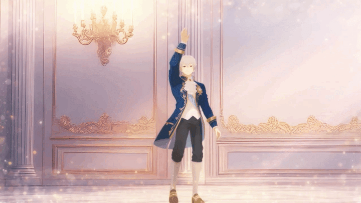 前奏が始まると、そこはキラキラとまばゆく輝くステージのような空間に。王太子ルイは音楽に乗せて歌い踊る。