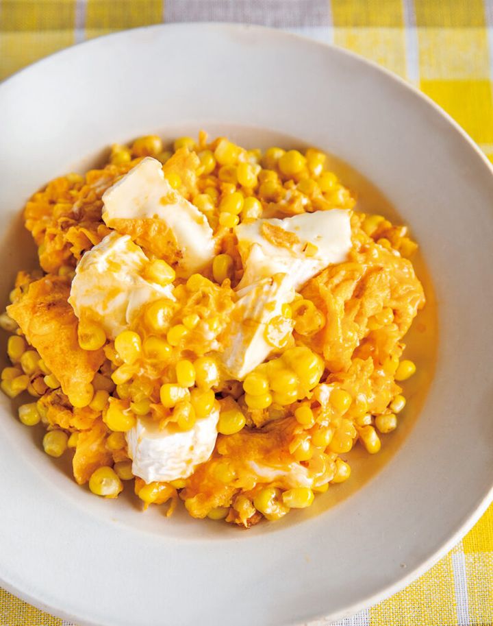 映え!美味しい!おもてなしにも「とうもろこしとカマンベールのスクランブルエッグ」