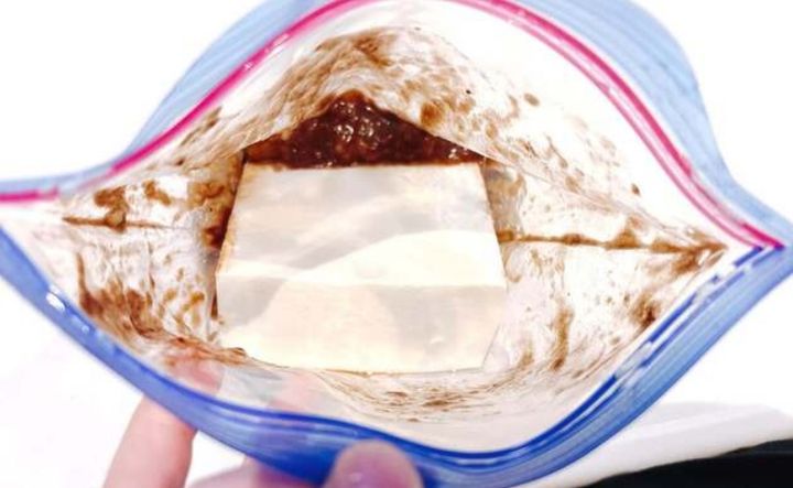 かたまったら袋を軽くもみほぐし、器に盛り付けます。なかなかほぐれないときは、綿棒を使うとラクです!