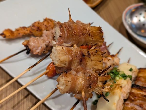 「エノキ巻き」は肉の旨みがえのきに染みわたり、肉とえのきのバランスがちょうどよくて、何本も食べたくなりましたよ。