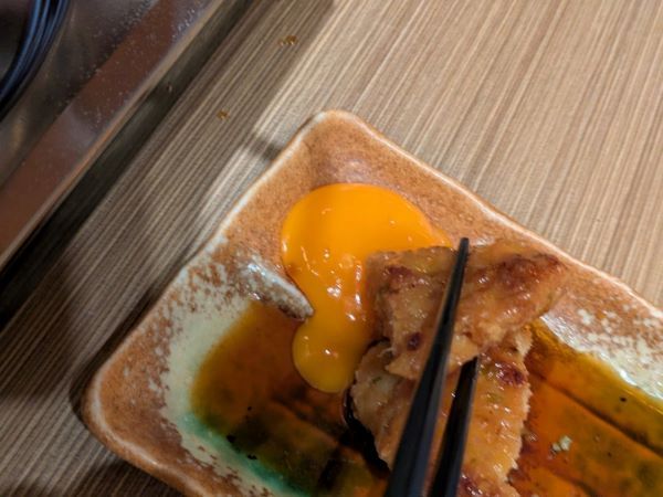 5種あるつくねから「月見つくね」(330円)もいただきました。手作り感のある形状にほっこり♪黄身にドボンしたら、言うことありません、鉄板です。
