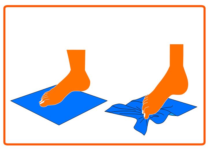 タオルをたぐり寄せる動作により、つま先や足裏の筋肉を鍛えられます。最初は椅子に座って行い、慣れてきたら立って体重をかけながら実践してみましょう。