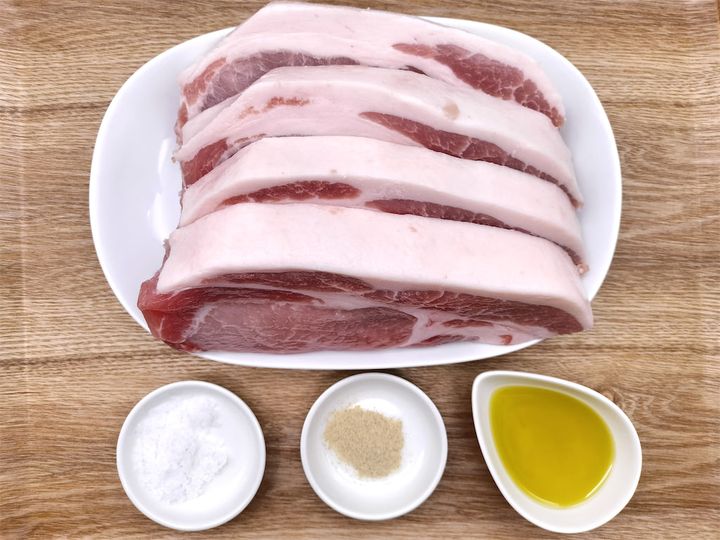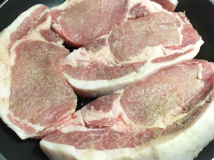 豚肉は水分を拭き取ってから両面にしっかり塩とこしょうを振っておきます。