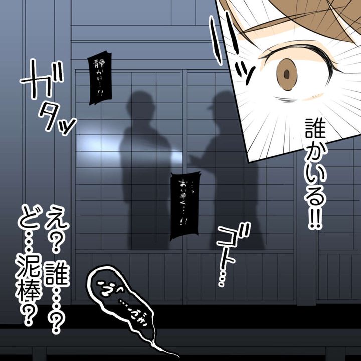 すると、「誰かいる!!「え?誰・・?ど・・泥棒?」人影が見え、なにやら話している様子に驚いていると、