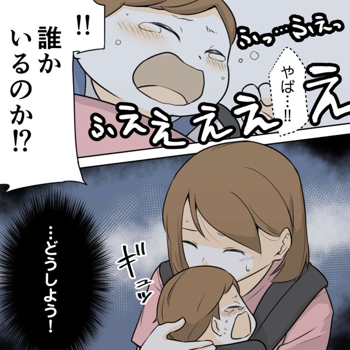 「ふっ・・ふえっ・・ふええええ」タイミング悪く、ソウスケが大きな声で泣き出したので「やば・・!!」と慌ててギュッと抱きしめると、「誰かいるのか!?」と声が!「・・どうしよう!」と絶対絶命の気分でした。