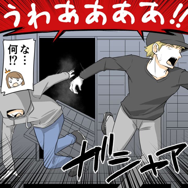 玄関が開いているのを見て怖くなり、マサルさんに電話したマキさん。でも、全く繋がらず、恐る恐る家の裏側から中を探ることに。すると、ぼんやり人影が見え、「誰かいる!!ど・・泥棒?」と動揺していると、ソウスケくんが大きな声で泣き出し、「誰かいるのか!?」と言われ、もう絶対絶命!すると、突然驚いた声が聞こえ、「うわあああああ!!」とふすまを突き破って逃げてくる男性の姿が!一体何があったのでしょうか!?もしかしたら・・汗