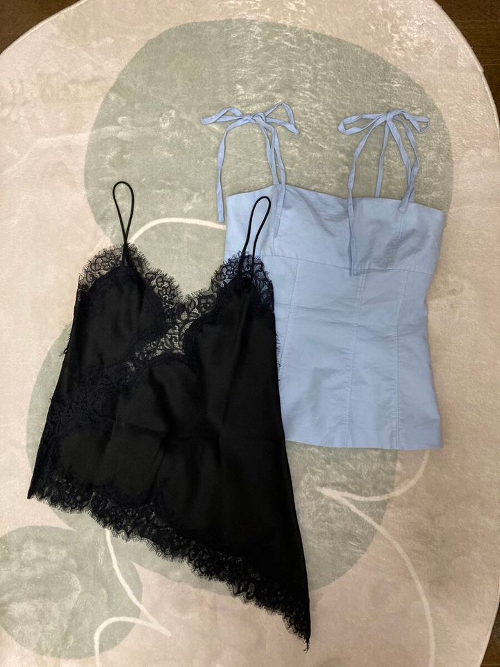 「暇さえあればZARAのアプリで新商品をチェックしている私。え? みんなそうだよね?? そんな私のこの夏のイチオシはキャミソール。ブルーのショルダーリボンが可愛い1枚はボーイフレンドデニムに合わせて既に着倒し中。ライトブルーのアイテム、夏になるとよく買ってしまいます。ブラックのキャミは久しぶりにレースの気分だったので購入。きれいめな白のカーゴパンツに合わせて女子会に着ていく予定です」