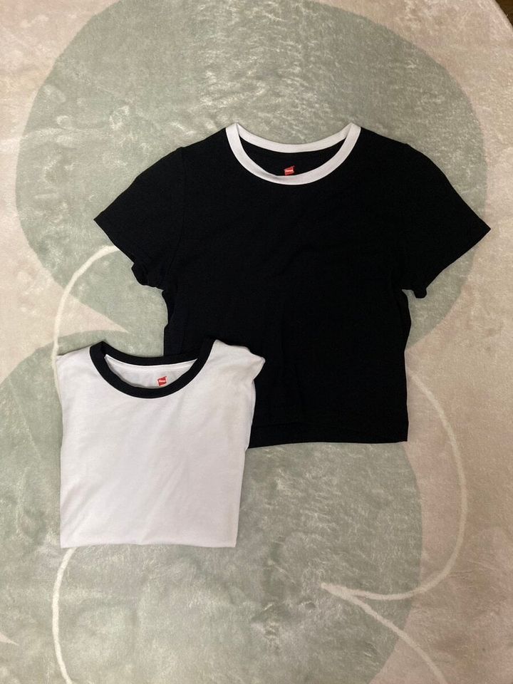 「可愛すぎて春先からスタンバイしていた2枚セットのパックT! コラボ最高! 襟ぐりの色だけ違うので、1枚で様になるんです。丈感、シルエット、素材と素晴らしすぎて2億点。特に着心地が本当によくて、蒸し暑い夏でも快適に過ごせるのが嬉しい。来年もぜひコラボしてほしい、絶対買う!」