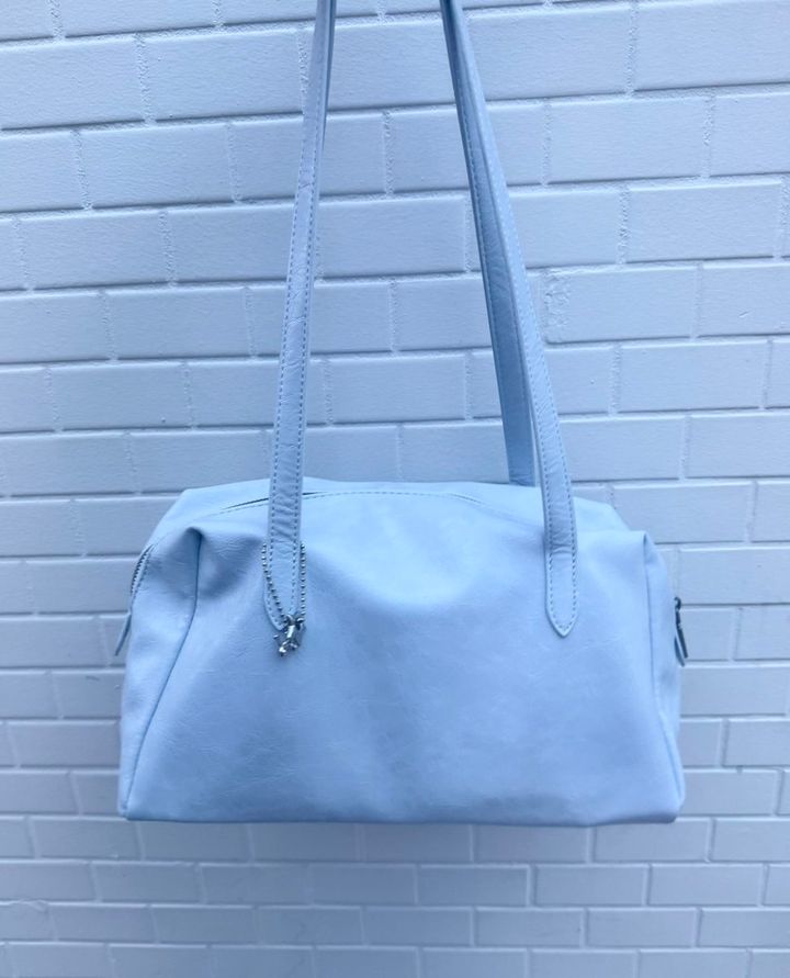 「韓国に行くと毎回行くnyu nyuで購入したアイテムを紹介します。アクセ、バッグ、服、チャーム、インテリアアイテムなど種類が豊富で、とにかくプチプラ。店舗によって置いてあるものが違うので、欲しいアイテムによって店舗を決めるのがおすすめ。わたしは聖水の店舗に行ってきました! このバッグは取っ手が長く肩かけしやすいものが欲しくて、3店舗ほど回って見つけたアイテム。淡いブルーのカラーが珍しいのと、カバッと開くので、物も出し入れしやすいのが購入の決め手です。個人的には500mlのペットボトルが入るかどうかも重要なポイントで、そちらもクリア。6本くらいは余裕で入りそうです。値段も19000ウォンとお手頃。チャームは別売りです」