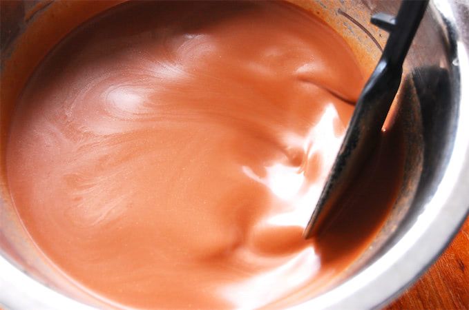 今回は分量を半分にして作りましたが、この一杯に、板チョコ1枚が溶けているんですよ。しかも、生クリーム入り。
