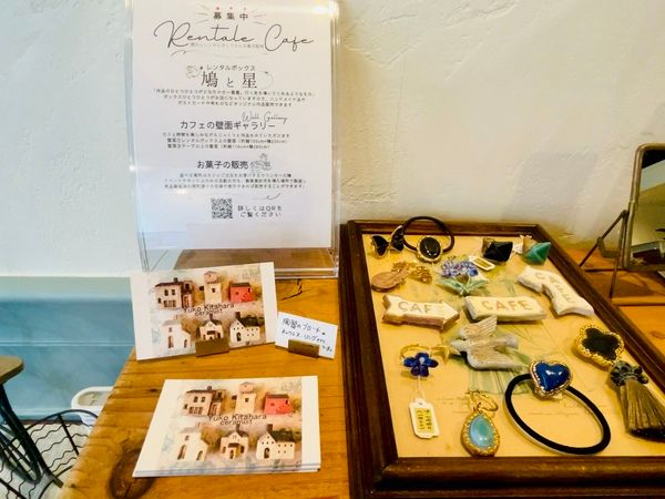 店内の一角には、レンタルボックスが設置されていて、ハンドメイドのアクセサリーやかわいらしい雑貨が並んでいます。