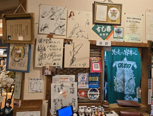 会計の時に気付いたのですが、たくさんのサイン色紙が飾られていました。 有名人からも愛されるお店だったんですね!