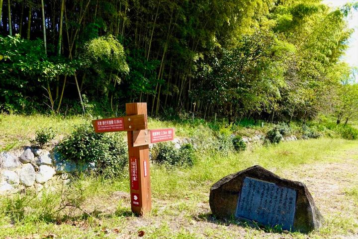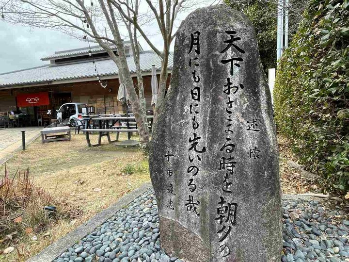 恋の詩、自然の優美さを表した詩があるなかでも、柳本町・天理市トレイルセンター付近にある戦国武将の十市遠忠の歌碑「天下おさまる時を朝夕の 月にも日にも先(まず)いのる哉」(出典:百番自歌合)は印象的。戦が続く時代に平和を祈っている想いが、目の前に広がる穏やかな景色とともに胸に染み渡ります。