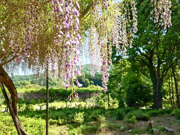 檜原神社の隣には、2026年に藤庭園も開園予定。白、ピンク、紫の藤棚の先に山も望める絶景が待っています。庭園が開園したら、奈良の絶景スポットとして注目されそうですね。