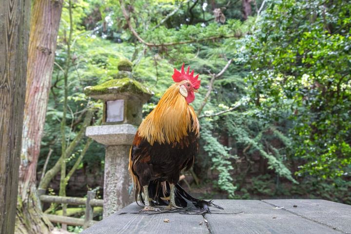 「天理駅」から約2km先にあるのは、『古事記』にも登場する最古の神宮「石上(いそのかみ)神宮」。こちらには天の岩戸開きの神話にも登場した鶏が縁起のいい鳥として放し飼いにされています。