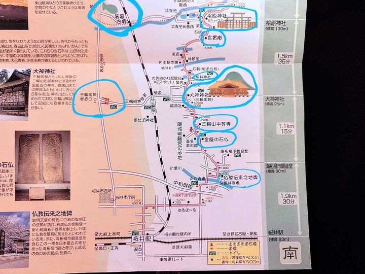 今回私は、三輪駅へ向かい「大神神社」を北上し、大神神社の摂社である「檜原神社」まで歩いてみました。片道約1.5km(約20〜35分)のお気軽ルートです。
