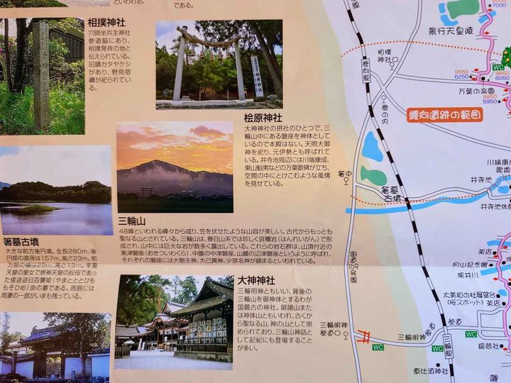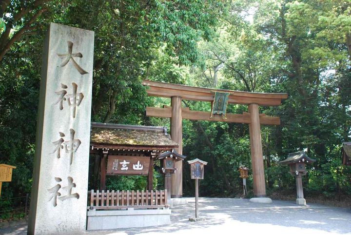 「三輪駅」の近くには、三輪山を御神体とする「大神神社(おおみわじんじゃ)」が鎮座し、駅の反対側には「大神神社の大鳥居」も聳えています。身体健康・病気平癒の「狭井(さい)神社」、天照大御神が宮中より最初に祀られた地とされる「檜原神社」という大神神社の摂社へと続いています。