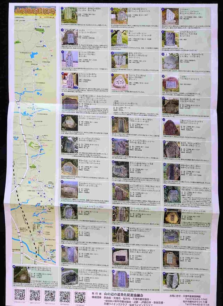 山の辺の道は、天智天皇、倭建命(ヤマトタケル)、飛鳥時代の歌人柿本人麻呂、俳人の松尾芭蕉など歴史上の人物の詩が刻み込まれた歌碑が全39基点在しています。