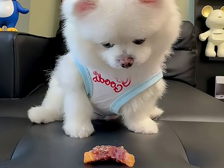 3. 目の前のおやつが減っていく! ポメラニアンさんの可愛い防衛反応