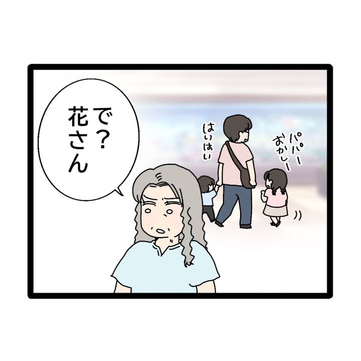 みんなでスーパーへやって来ると、突然「で?花さん」と義母にたずねられた花さん。