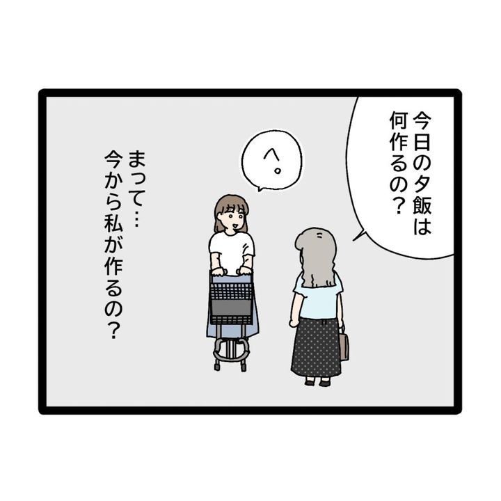 「今日の夕飯は何作るの?」と言われ、「へ」と思わず言葉が漏れ、「まって・・今から私が作るの?」と心の中で問いかけました。