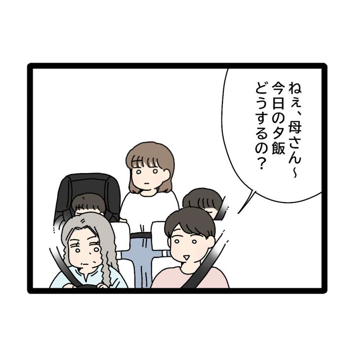 そして車で義実家に向かっていると、「ねぇ母さん~。今日の夕飯どうするの?」とひできがたずねました。