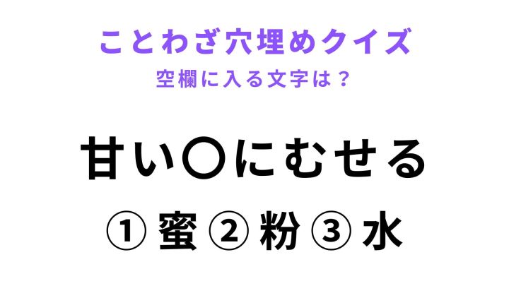 【甘い〇にむせる】空欄に文字を入れてことわざを完成させて!