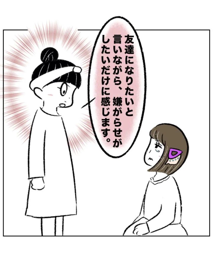 「友達になりたいと言いながら、嫌がらせがしたいだけに感じます。」この日のまるさんは、ゆかちゃんママにハッキリと伝えました。