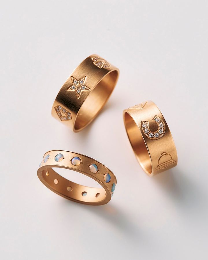 上から:リング[K18YG×DIA]¥451,000、リング[K18YG×DIA]¥297,000、リング[K18YG×クリスタルオパール]¥352,000(全てトーカティブ/トーカティブ 表参道)