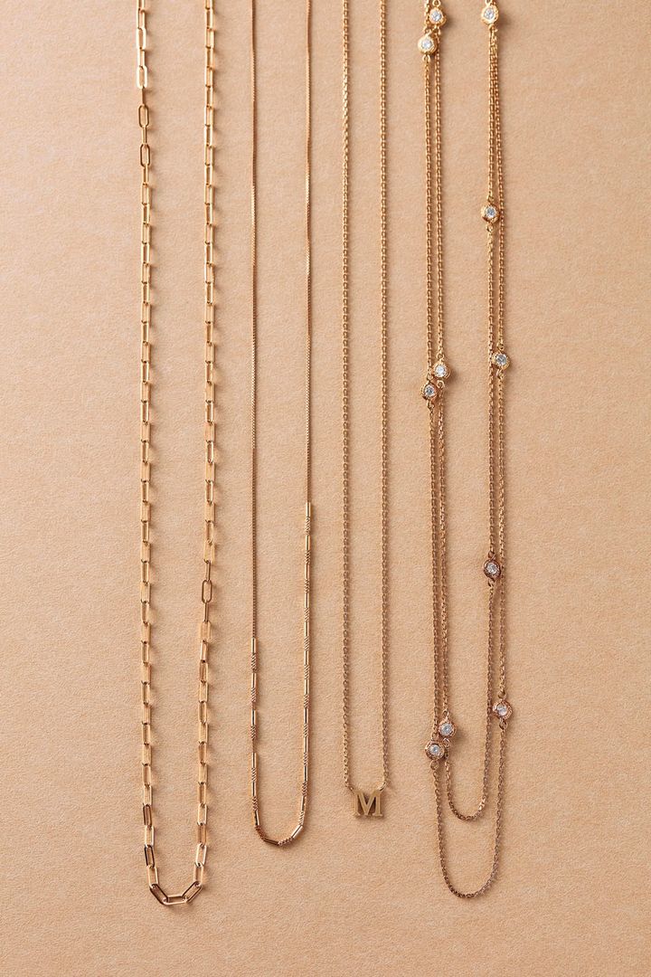 左から:ネックレス[K18YG]¥231,000、ネックレス[K18YG]¥77,000、イニシャルネックレス[K18YG]¥118,800、ネックレス[K18YG×DIA]¥565,400(全てGIGI/ホワイトオフィス)