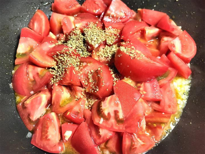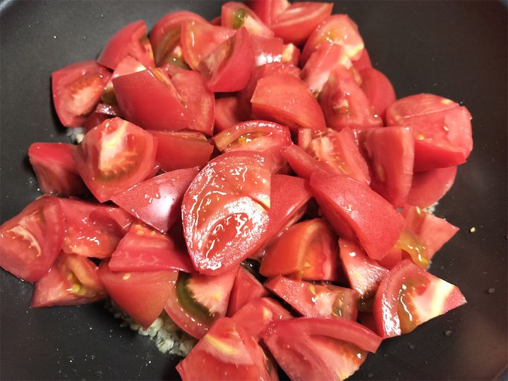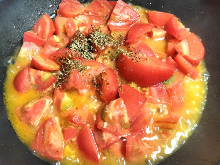 2. トマトを加えて沸騰させます。
