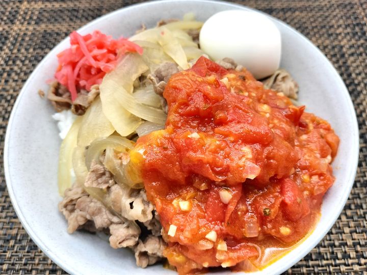 吉野家にトマトソースのトッピングがあるのかどうかは定かではありませんが、ソースを絡めて食べてみると、不思議とよく合って、おいしく食べられましたよ。