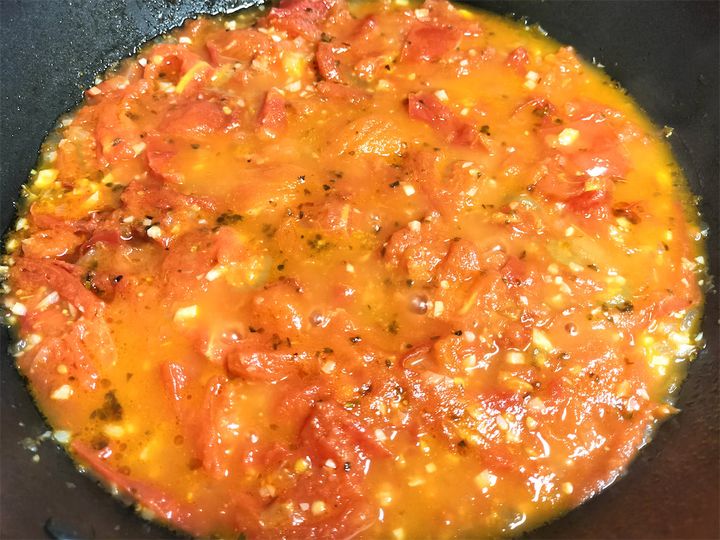 まだ温かい状態のソースを少し舐めてみると、少量なのににんにくとハーブの香りがちゃんと感じられて、しかもにんにくがしつこくない。文字通り、トマトのおいしさ満載のソースでした。
