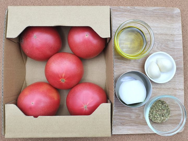 トマトを1kgも使う割には他の材料が少ないので、これは本当にトマトだけのソースだなと、作る前に感じました。