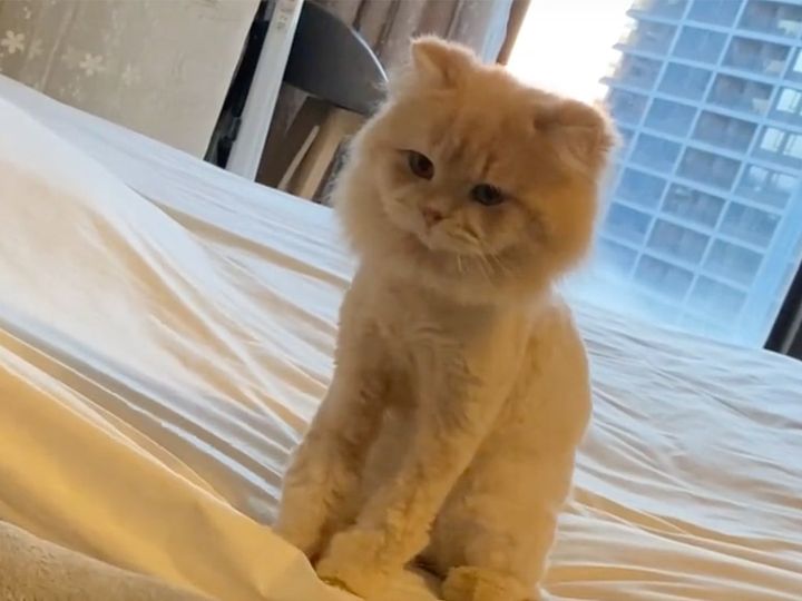 ベッド上の猫vsソファに隠れる猫さん、バレた瞬間の“にゃっ!”が可愛すぎる