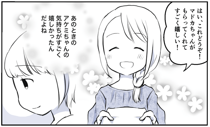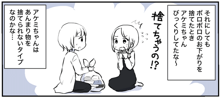 しかしアケミちゃんが以前私にお下がりをくれたとき、とても丁寧に畳んで渡してくれたのです……。