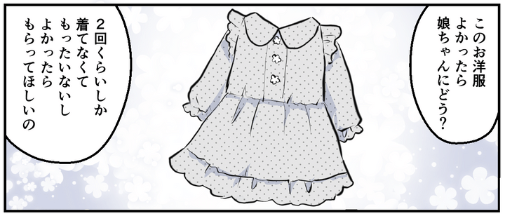 まだ真新しい状態の可愛いワンピースをもうサイズアウトしてしまったからと、お下がりしてくれました。