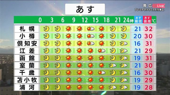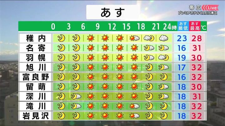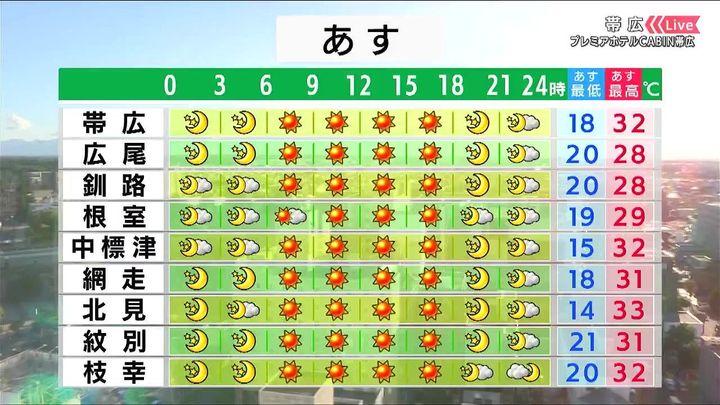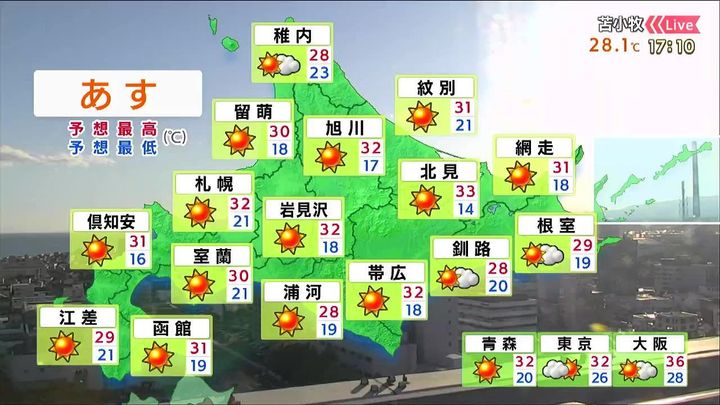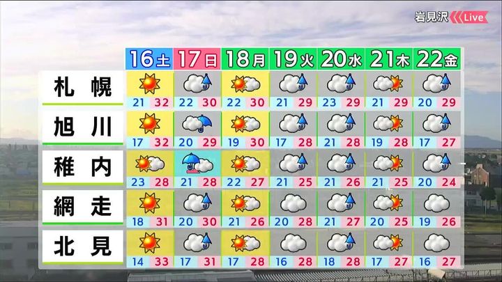 ただ、北見のあす16日(土)朝は14度、日中は33度と一日の気温差が大きいでしょう。