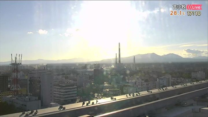 背景は16日午後5時ごろの苫小牧情報カメラ