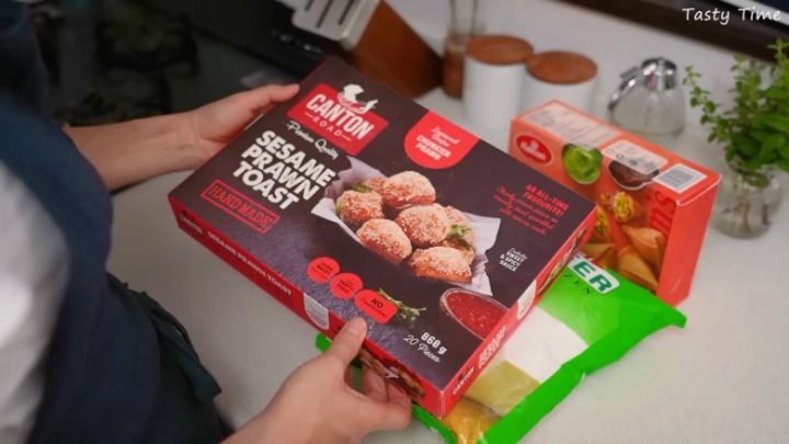 冷凍のベトナム産「セサミエビトースト」。
