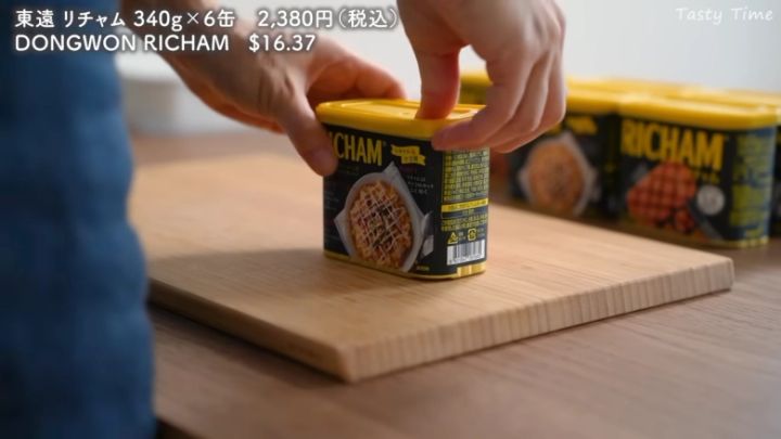 スパムよりも塩分が控えめで、やさしい味わいが特徴のランチョンミートです。