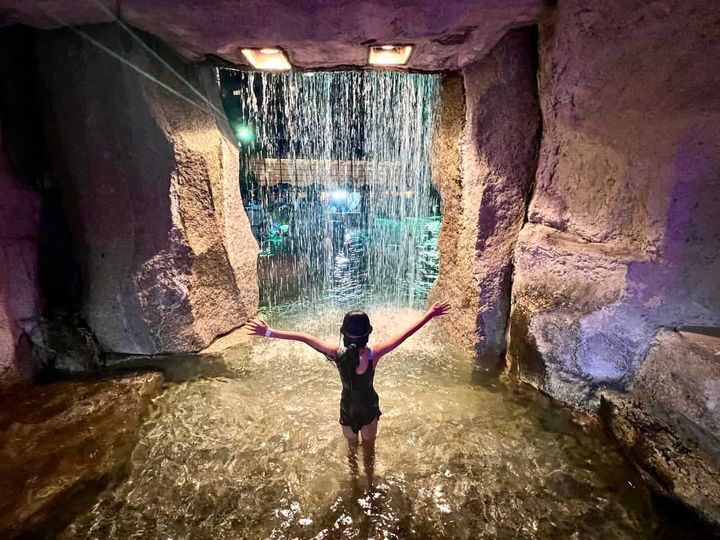 映えスポットの「ガーデンプール」の滝の裏。