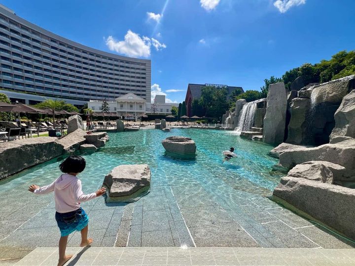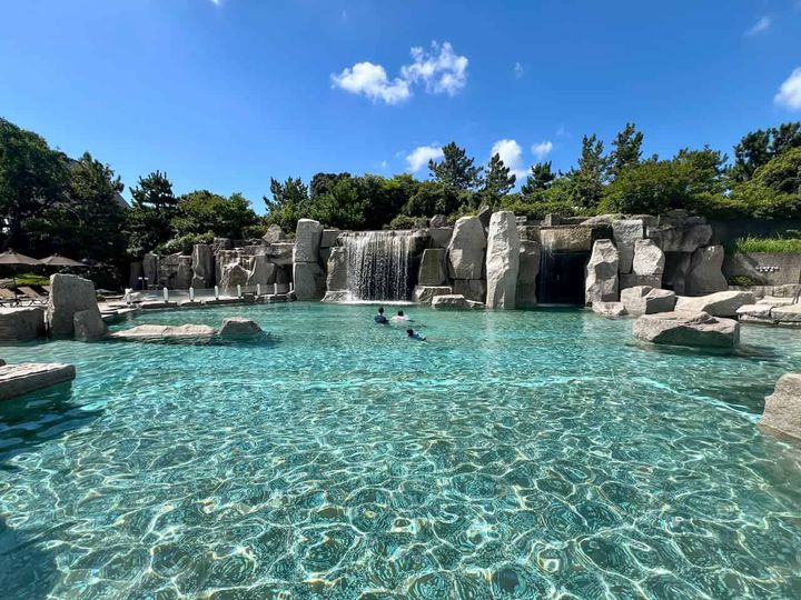 宿泊する場合は、朝イチの「ガーデンプール」も空いているので、オススメです!名物の滝のプールで思う存分楽しむことができます。