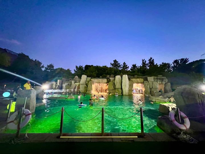 ライトアップされた「ナイトプール」。
