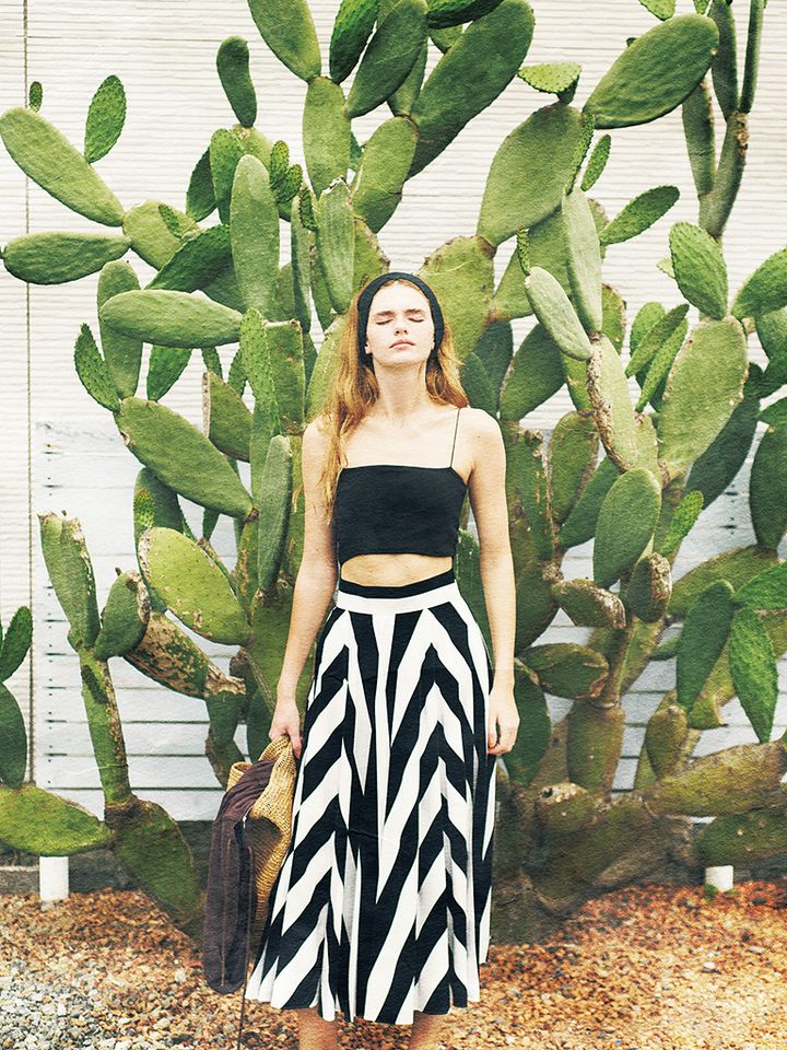 モードとリゾートの間をいく「モノクロの太ストライプ」