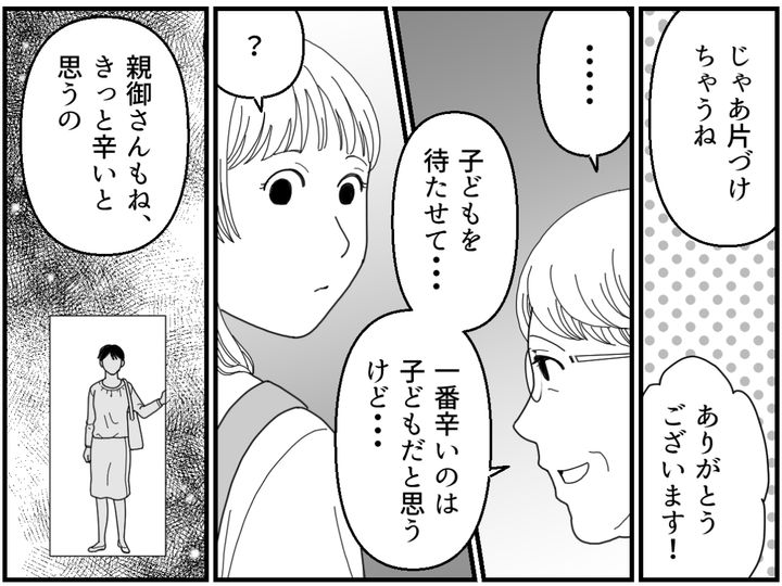子どもたちが全員帰ったあと、保育室の掃除をしていた私。すると園長先生は作業をしながら、私に向かって静かに話しはじめました。「親御さんもね、きっと辛いと思うの」先ほど私がハヤトくんのお母さんに言ったことを聞いていたのでしょう。