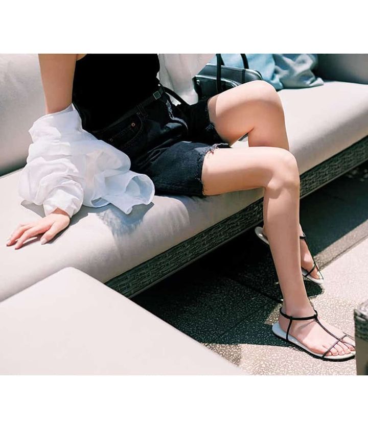 ワンマイル圏内のお出かけはほぼ黒コーデに白を挟んで夏らしい軽やかさを。カジュアル度の高いタンクトップ×デニムハーフパンツコーデは極細ストラップサンダルで女らしさをプラス。さりげないこだわりでぐっと垢抜け!