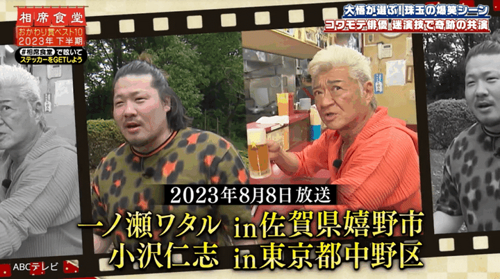 大ヒットドラマ『サンクチュアリ -聖域-』でブレイクした俳優の一ノ瀬ワタルが登場した、バラエティ番組『相席食堂』(ABCテレビ)の過去ロケ映像を再び公開。ロケで故郷を訪れたワタルは、34歳で死去した父親の代わりだった兄と数年ぶりに再会した。一ノ瀬兄弟のドラマのようなロケ映像は、MCを務めるお笑いコンビの千鳥を感動させ、とあるランキングで1位に輝いた。