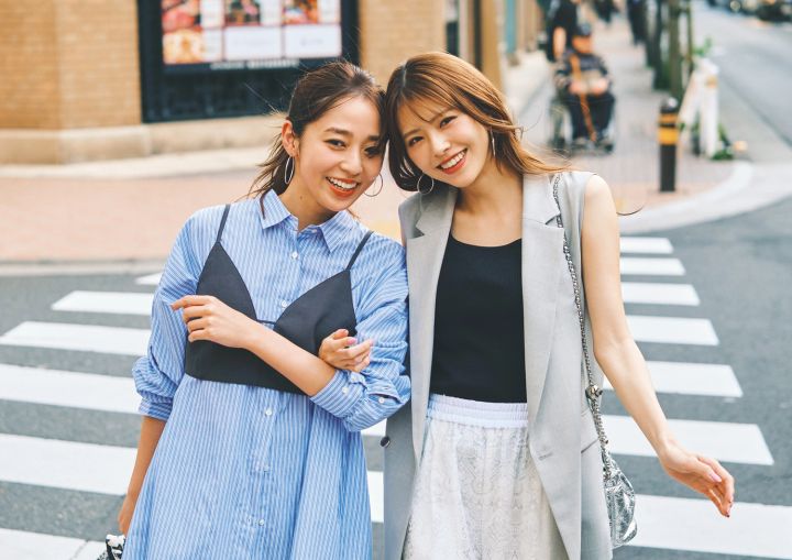 ビッグシャツ¥11,000/エフバイロッソ(アーバンリサーチ オンラインストア) グレーパンツ¥2,990/GU ビスチェ付きワンピース(ビスチェ)¥14,990/NATURAL BEAUTY BASIC ワンハンドルバッグ¥27,500/マルコ マージ(ル タロン 有楽町マルイ店) スニーカーサンダル¥13,750/ル タロン(ル タロン有楽町マルイ店) スカーフ¥2,490/MANGO フープピアス¥26,400/プラス ヴァンドーム