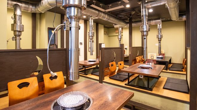 壁と廊下で仕切られている「北新地三日月」は、お客さんが自分で焼肉を焼くスタイルのお店ですが、シックなしつらいの全個室でさまざまなシーンで利用されているそう。